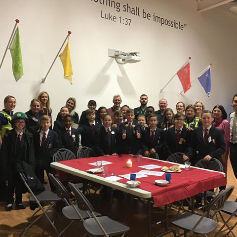 As school finished yesterday, the children quickly prepared the hall for our guests: setting up tables and chairs, laying the tables, putting out candles and preparing drinks. We had a great turn out with a nurse, a couple of paramedics, some governors and a number of PCSOs joining us for the evening.